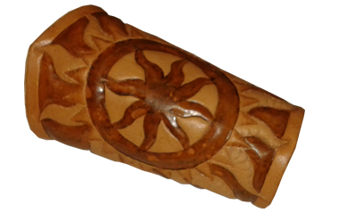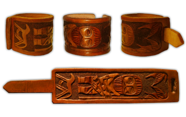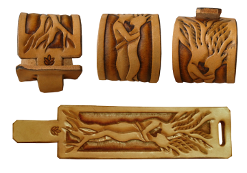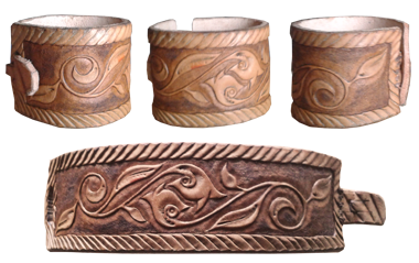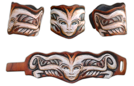 eigenes Design mt Loki und Draupnir, dreifarbig (Braun, Gelb und Eigenfarbe des Leders) keine Maßanfertigung, kann an verschiedene Größen angepasst werden |