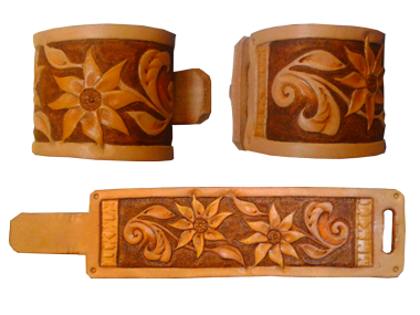 Armband mit stilisierten Pflanzenornamenten, eigenes Design, zweifarbig (Braun und Eigenfarbe des Leders) Maßanfertigung |