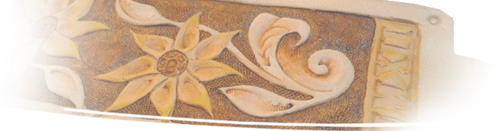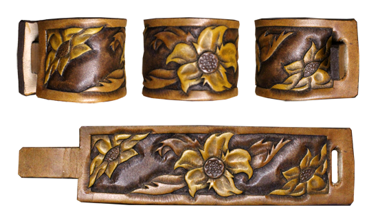 Armband mit stilisierten Blumenornamenten und Datumspunzierung, eigenes Design, dreifarbig (Braun, Gelb und Eigenfarbe des Leders) Maßanfertigung |